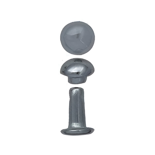 6mm Nickel, Double Cap Domed Rivet, Steel - 12 pk