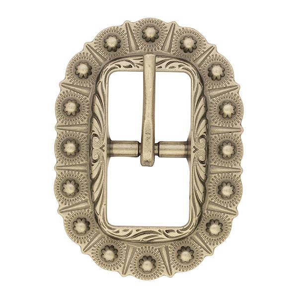 - Classic oval shape pairs with an intricate berry design for a buckle that adds flair to your saddlery projects