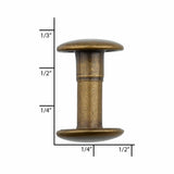 15mm Antique Brass, Double Cap Jiffy Rivets, Solid Brass -100ct
