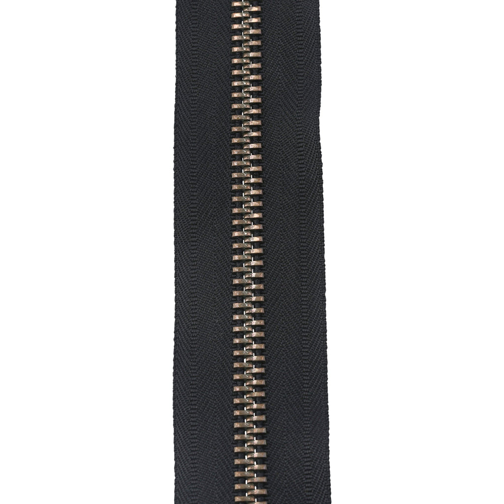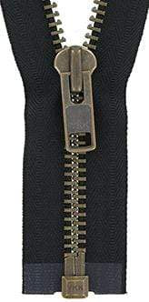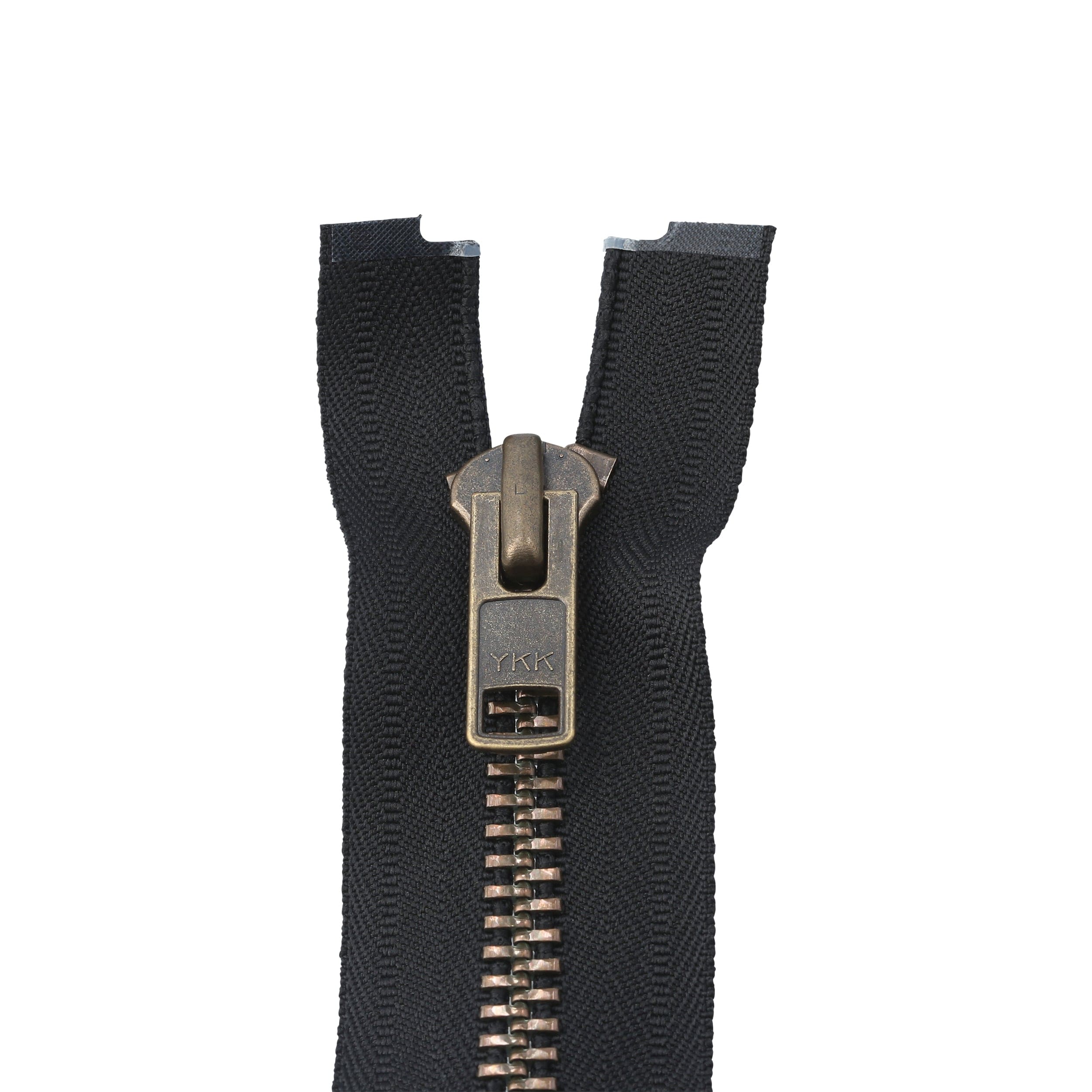 - YKK® bomber jacket zipper available in antique brass or oxidized teeth featuring a separating zipper end.