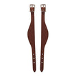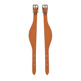 Help keep stirrup leathers in place with our bridle leather fender hobbles with smoothed and darkened edges and nickel plated hardware. Sold per pair. Measure 5/8" wide with a 1-1/4" flare.