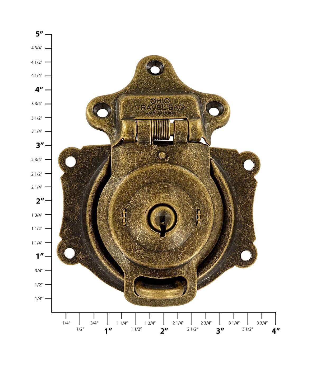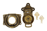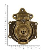 3 1/2" Antique Brass, Large Trunk Lock w/ Spring, Steel