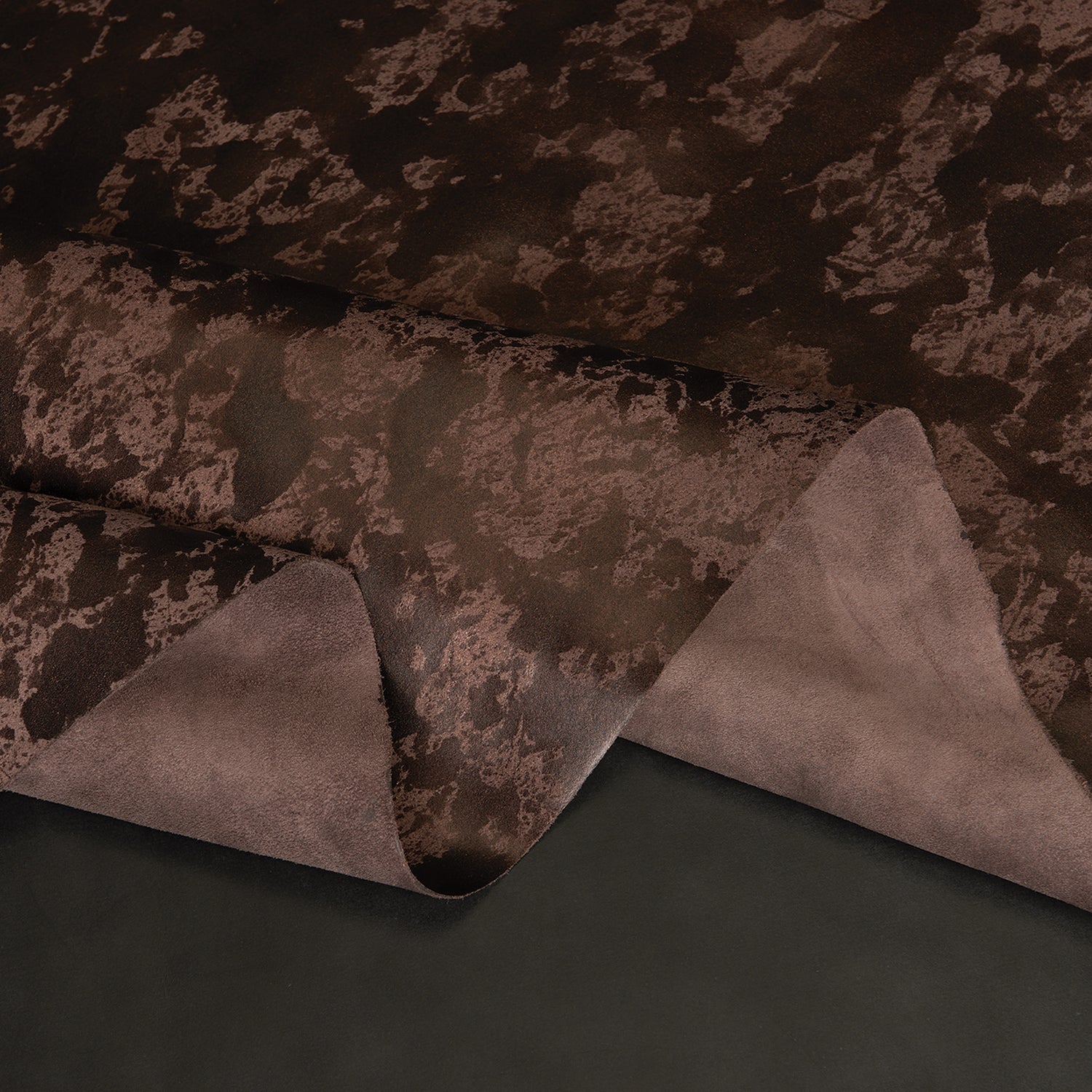 - Mesmerizing suede leather undergoes a special hand finishing process that produces some waxy areas for a visually stunning mottled metallic effect