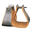 Perfect for military saddles. Shaped from the finest selection of 1/2" thick hickory wood and bound with high quality and meticulously-creased 24 gauge galvanized metal, these stirrups are designed to last! Each stirrup is carefully sanded on all edges then varnished to help prevent splintering, sharp edges and damage from the elements. Sold per pair. This military style features a 1-1/2" Neck, 4-1/4" Tread, 6-1/4" Height and 6" Width.