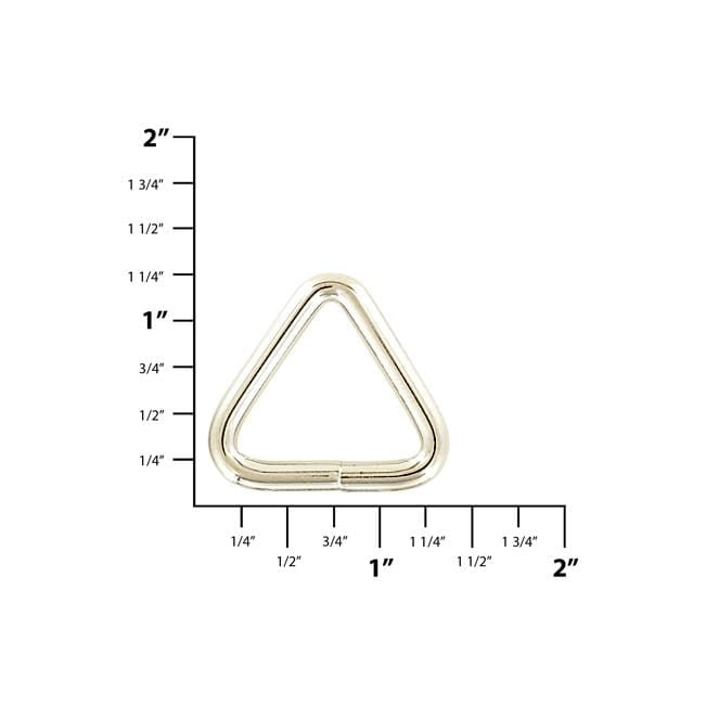 - Our welded triangle ring features a popular shiny nickel finish and can accommodate strapping up to 1" wide
