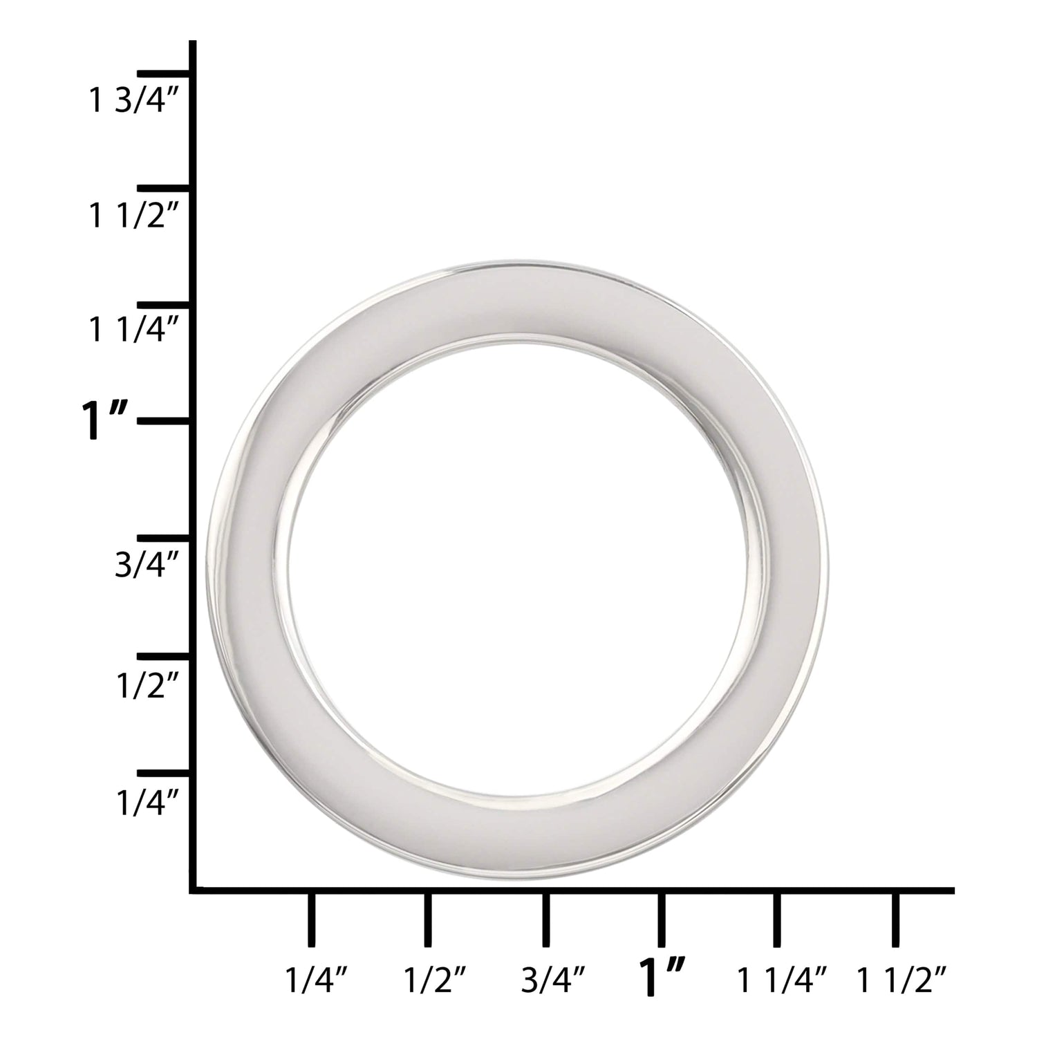 1" Shiny Nickel, Cast Flat Round Ring, Zinc Alloy