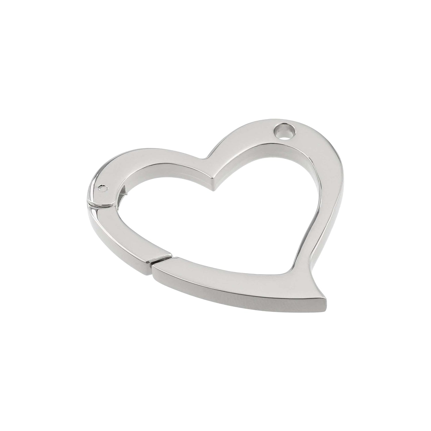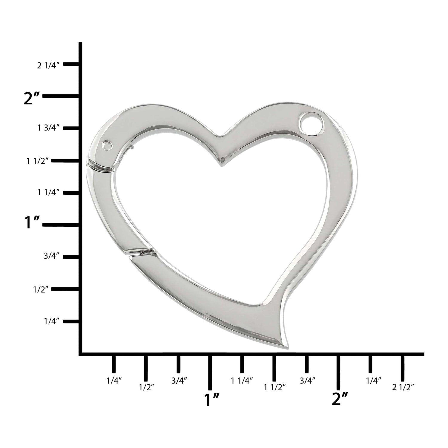 1 3/4" Shiny Nickel, Heart Shape Ring with Spring Gate, Zinc Alloy