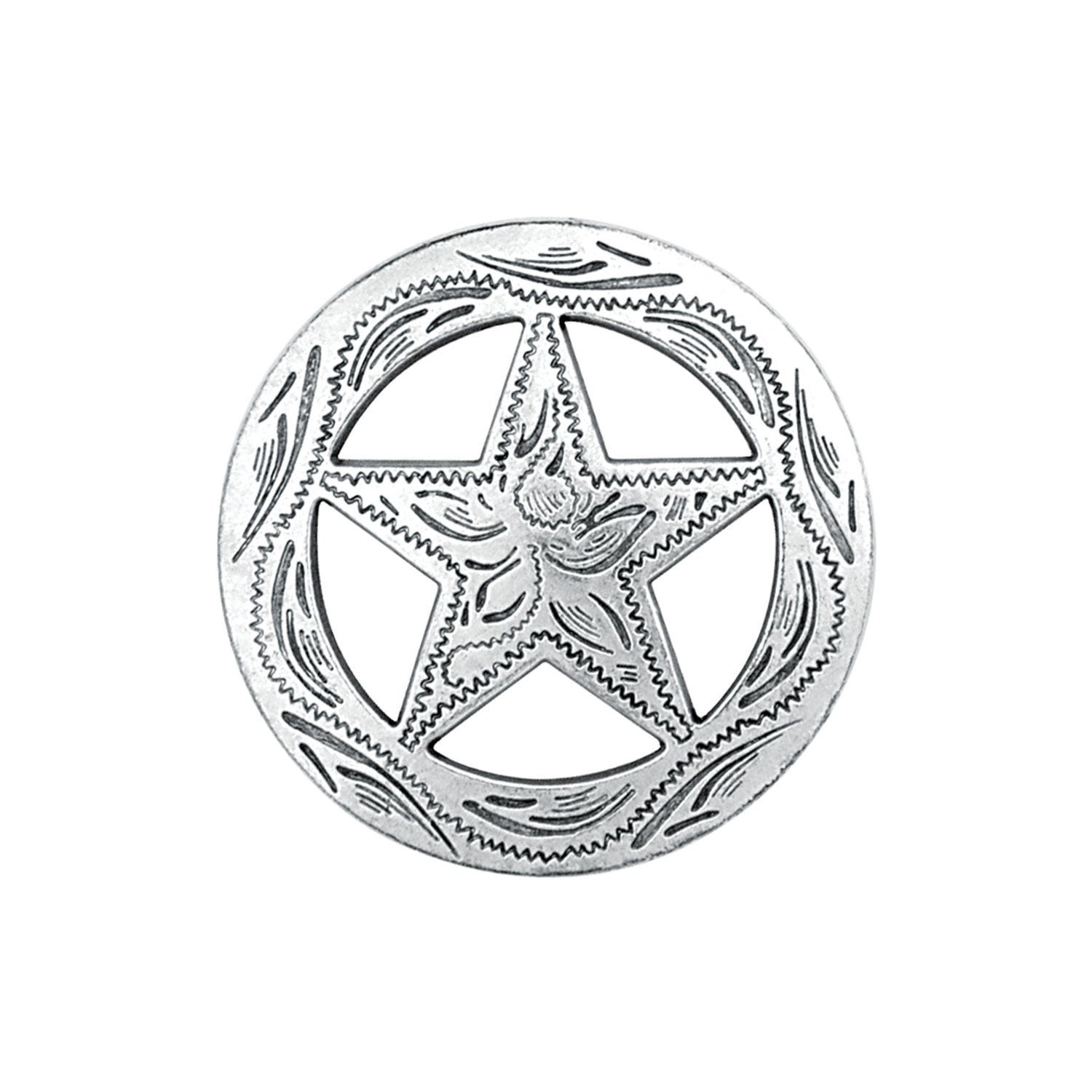 - Popular star design pairs with delicate engraving to give this antiqued silver concho versatile style perfect for a wide range of items